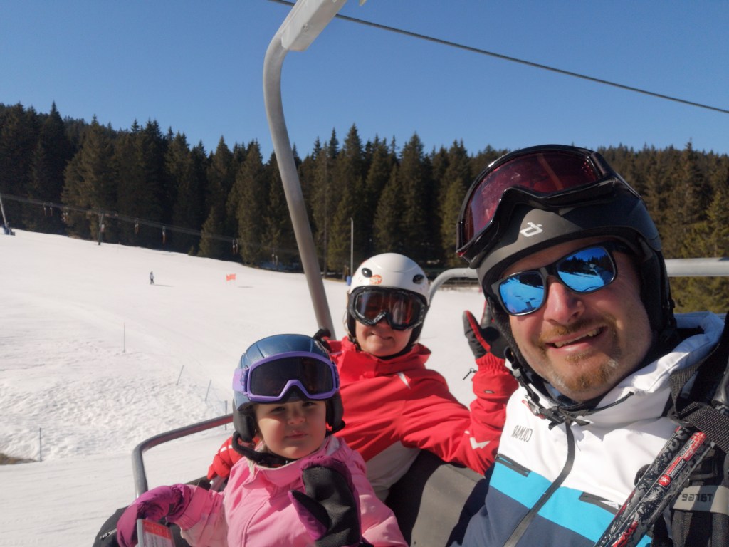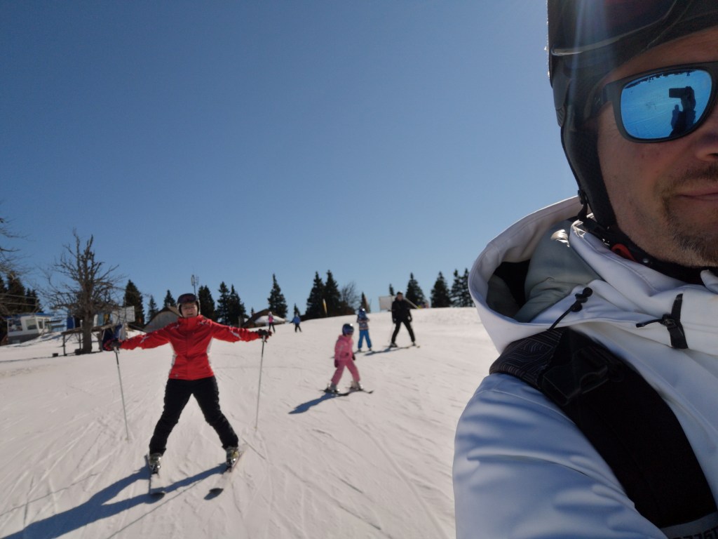 Mi smo sicer preskočili smučanje med počitnicami zaradi pričakovane gneče na smučiščih, smo pa vpisali v tem času našo Lauro v tečaj smučanja, ki ga je organiziral Zavod G-rega na Pokljuki. V petih dneh se je naučila zelo veliko in se sedaj praktično lahko samostojno spusti tudi po srednje zahtevnih terenih. Suvereno zavija in tudi kontrolira hitrost, prav tako pa ji vlečnica ne predstavlja nobene težave. No po koncu tečaja in počitnic je bila situacija v skladu z našimi željami – torej, parkirišča za avtodome skoraj prazna, bele strmine pa pripravljene na naše družinske vragolije.