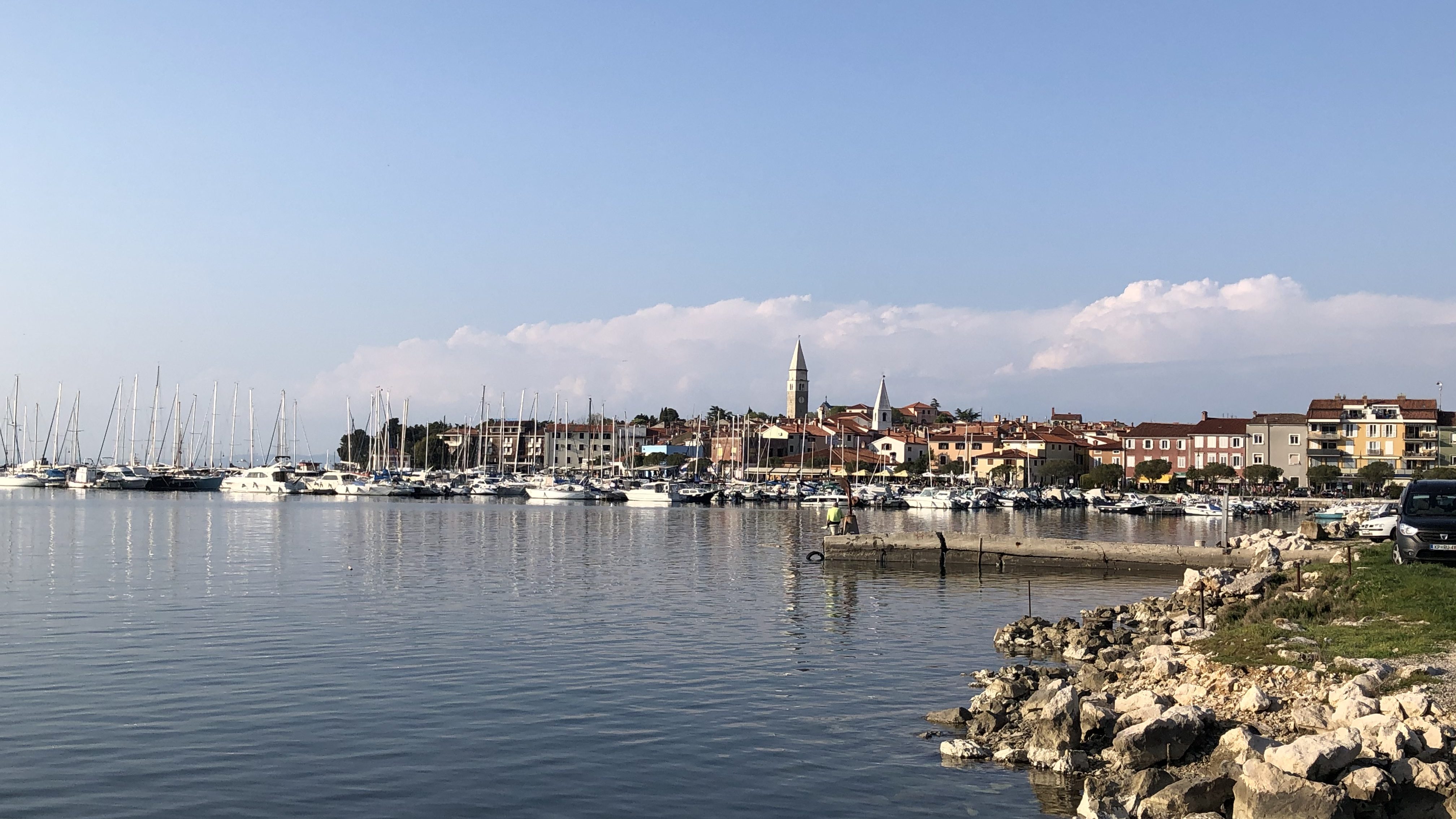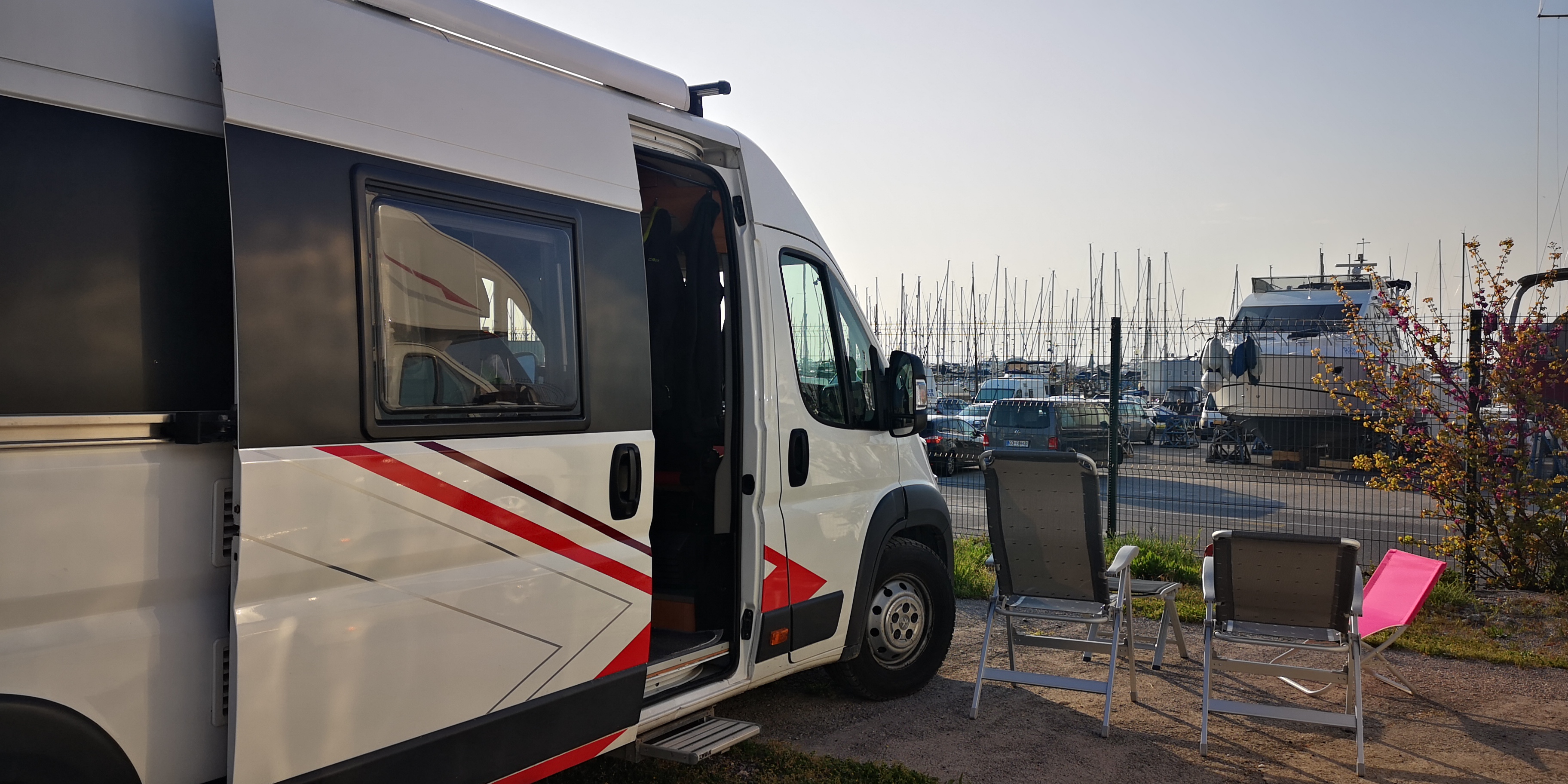 Po kosilu smo pospravili naše stvari in odrinili proti Izoli, ker smo hoteli preizkusiti ‘znameniti’ PZA Argo. Več o občutkih in samem parkirišču si lahko preberete v razdelku Seznam naših postajališč (PZA Argo). Nekaj prostora je še bilo, saj je bila nedelja popoldne in veliko avtodomarjev je že odrinilo proti domu. Dobili smo prostor v prvi vrsti z dovolj prostora za udobno bivanje, kar je velik plus, saj je bil razgled lepši kot v Kopru – tukaj si vsaj videl morje in barke, pa še lep sončni zahod smo ujeli.