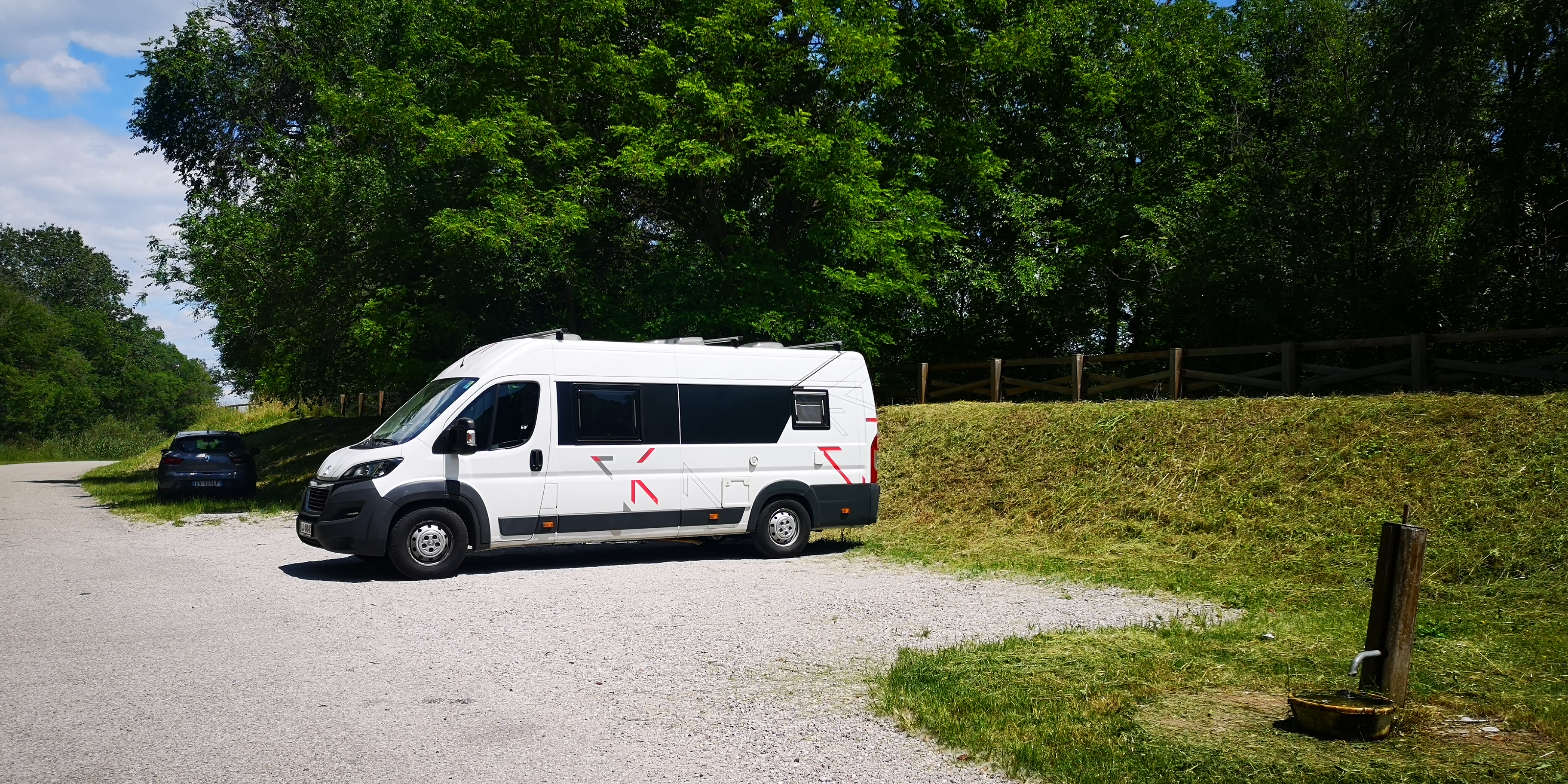 Kot že rečeno smo se počasi odpravili proti Sloveniji, na poti pa smo se ustavili še v Gradežu oziroma smo se namenili malo izven Gradeža in sicer proti izviru Soče. To je skoraj obvezna postojanka glede na to, da smo že nekaj let tesno povezani s to našo najlepšo reko. Avtodom smo usmerili proti kolesarski stezi, ki prihaja iz smeri Gradeža in se nadaljuje proti izlivu Soče ter ga parkirali na dovolj prostornem parkirišču ob kolesarski stezi morda kake 3-4 kilometre od reke Soče (Villagio Punta Sdobba) – parkirišče najdete na naslednjih koordinatah: