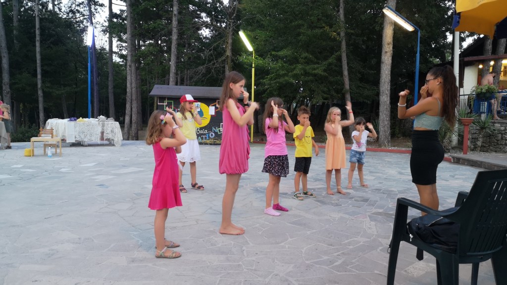 Predvsem zvečer bazen predstavlja nekakšen center dogajanja, saj se na enem koncu nahaja restavracija, ki ji na žalost nismo dali priložnosti – imajo sicer tipične italijanske/mediteranske specialitete skupaj z nepogrešljivo pico iz krušne peči. Ob bazenu je nekaj rekreativnih površin – mize za namizni tenis, teniško igrišče in večnamenski prostor, kjer uvrstijo raznorazne dogodke ter seveda obvezni mini disco. Naj povem, da naša Laura verjetno obvlada več italijanskih pesmic kot slovenskih in kot kaže glede na uvodnik objave, bo znanje le še bolj utrdila.