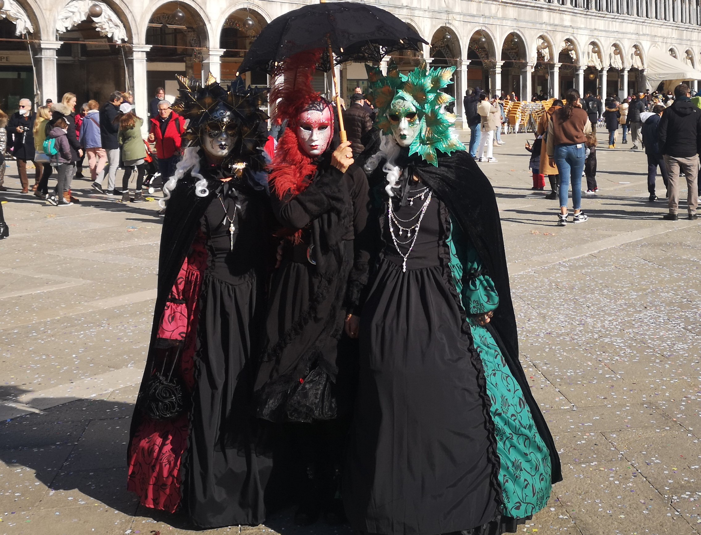 Mi smo vstali in se našemili že zelo zgodaj, ker smo hoteli čimprej priti v Benetke pred hordami turistov. Naša strategija se je kar obnesla, saj smo se lahko dokaj normalno gibali vzdolž beneških znamenitosti in fotografirali znamenite beneške maske. Ker smo bili tudi sami nekako bolj v beneškem slogu smo se lepo ujeli v dogajanje. Če že hodite na karneval priporočam, da si nadenite vsaj kakšno od beneških mask, ki jih sicer prodajajo skoraj na vsakem koraku, tudi samo za nekaj evrov.