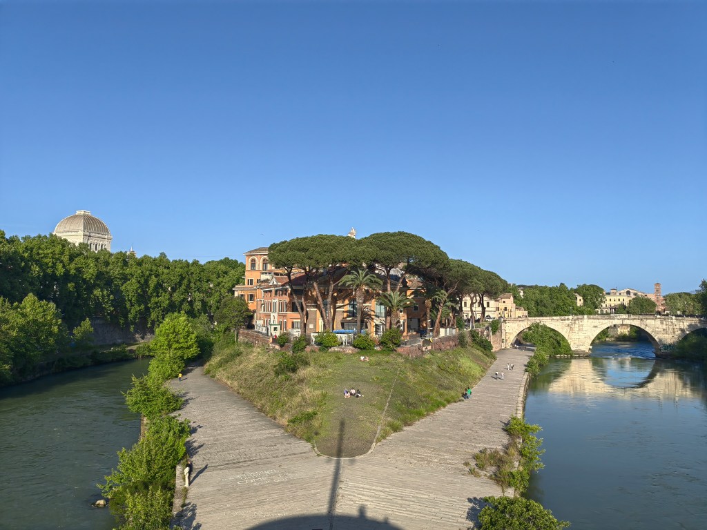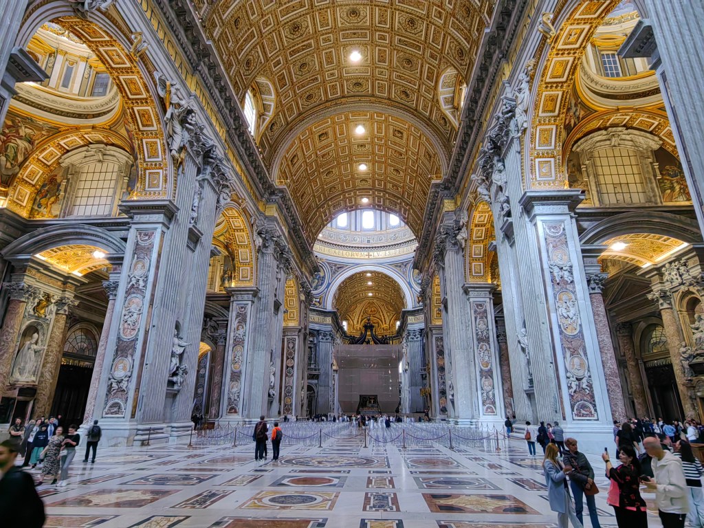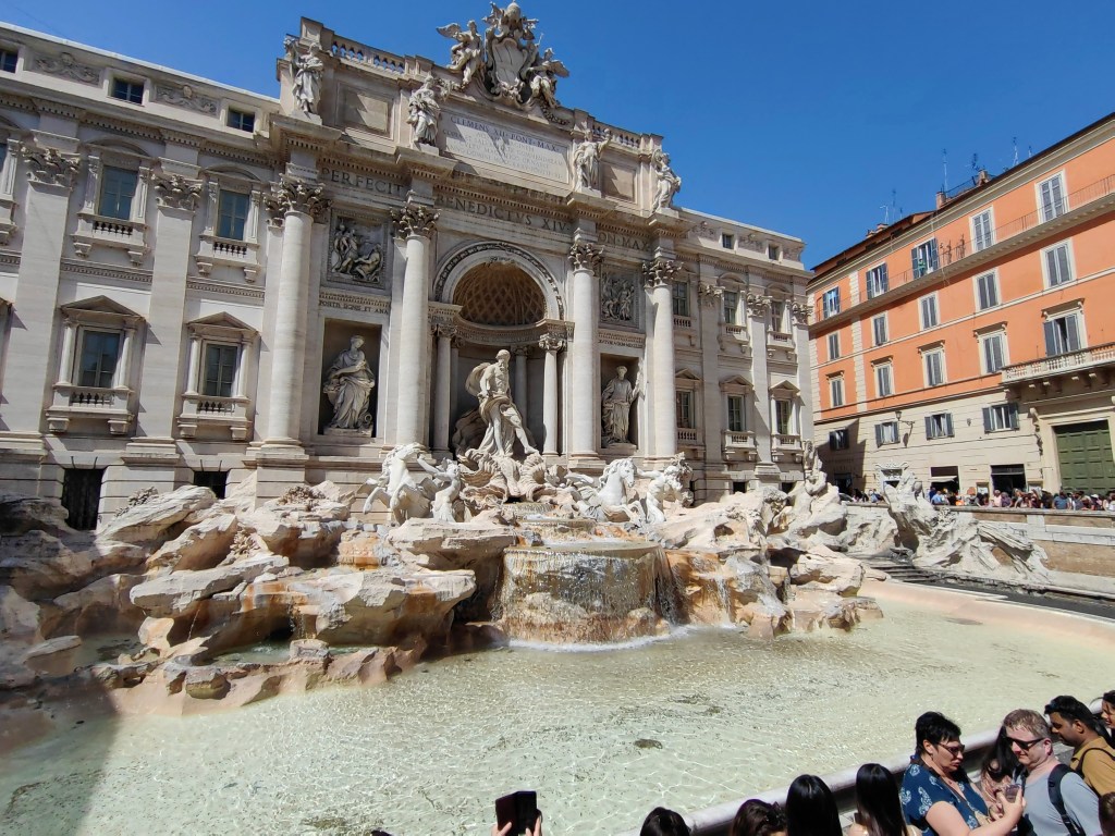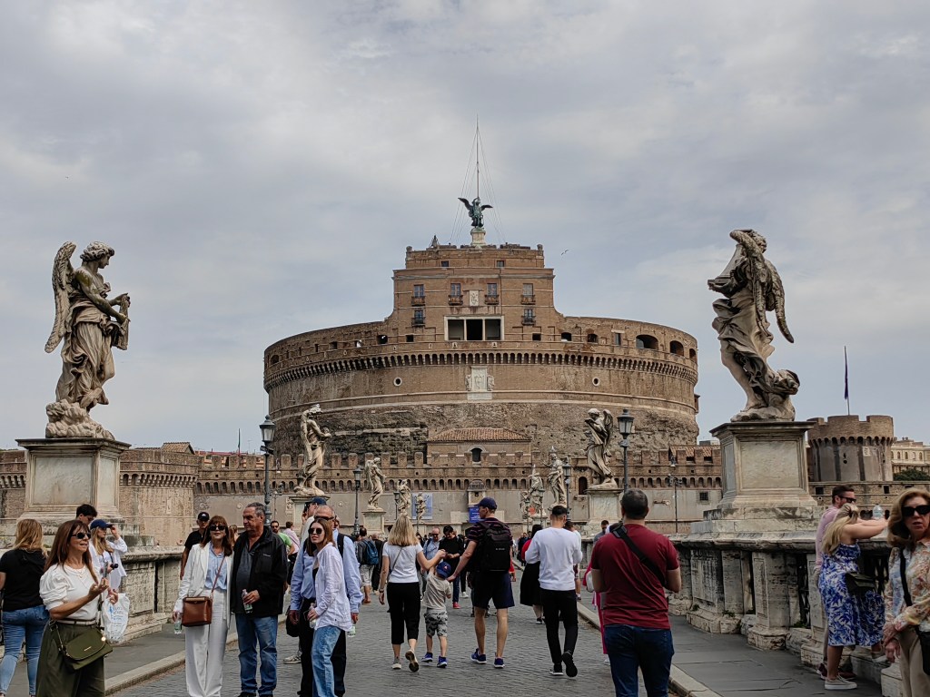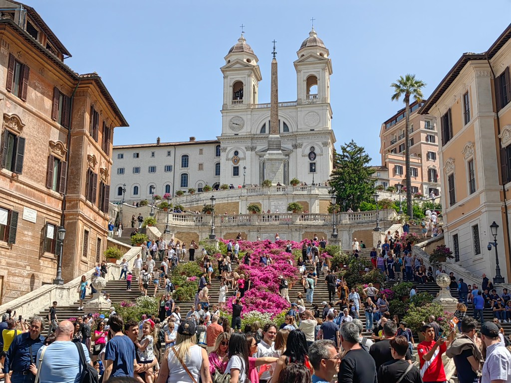 Zbudili smo se v oblačno jutro, pred nami pa je bil še en naporen dan, saj smo načrtovali zopet preko 20k korakov. Začeli smo že ob 8.30 uri na Petrovem trgu, kjer pa je že množica ljudi čakala v vrsti za vstop v največjo krščansko baziliko na svetu. Resnično, nismo pričakovali, da bo vrsta ljudi tako zgodaj že tako dolga, ampak nam ni drugega preostalo, kot da se postavimo na njeno začelje in potrpežljivo, nekako v romarskem duhu čakamo, da bomo na vrsti za vstop. Ob čakanju smo naredili na desetine posnetkov bazilike Svetega Petra in trga pred njo, po približno 25 minutah (na koncu ni bilo tako hudo) pa so nas po varnostnem pregledu spustili v cerkev, ki je znotraj resnično dih jemajoča, še boljši pa je razgled z vrha, ki pa je bil za nas tokrat nedosegljiv, zopet zaradi vrste čakajočih. V okviru Vatikana je verjetno glavna atrakcija Sikstinska kapela z Michelangelovimi freskami ter Vatikanski muzeji. Le do slednjih bi lahko kupili vstopnice, za Sikstinsko kapelo pa so bile vstopnice razprodane že nekaj tednov prej. Če res načrtujete obisk Rima za prvomajske praznike, je res potrebno vstopnice za najpomembnejše atrakcije (predvsem kapelo) rezervirati verjetno vsaj mesec ali dva vnaprej. Nič ne de – več časa nam je ostalo za obisk še nekaterih, ogleda vrednih rimskih turističnih znamenitosti. Zopet smo uporabili naše pohodniške noge in se peš odpravili iz Vatikana do mosta Ponte Sant’Angelo in istoimenskega gradu ob reki Tiberi. Od gradu proti severni strani smo ob reki našli simpatičen lokalček Biblio Bar Roma, kjer strežejo krasne rogljičke, panine in seveda vrhunsko kavo. Lahko si tudi sposodite kakšno knjigo ali odigrate šah z velikimi plastičnimi figuricami. Od tam pa do Piazza de Spagna ni več daleč, zato so bile znamenite španske stopnice naš naslednji cilj, kjer se je zopet trlo ljudi, vendar se je nekako dalo ujeti par dobrih fotografij. Po odličnem kosilu v bližini smo skočili še do vodnjaka Trevi, ki pa je na našo veliko žalost bil ograjen zaradi nam neznanega razloga – v njegovo neposredno bližino, da bi lahko zalučal kak kovanec čez ramo nismo smeli. Zaradi vročine, bilo je preko 30 stopinj, smo si preostanek popoldneva želeli preživeti v senci dreves, zato smo se odpravili v prekrasni park Villa Borghese in ga obdelali po dolgem in počez v najetem štirisedu na nožni in delno električni pogon, kar nas je precej zabavalo. Z vrha parka se lepo ujame tudi Piazza del Popolo, kjer so v času našega obiska postavili pravo teniško igrišče, saj je moška teniška karavana čez nekaj dni prišla v večno mesto na enega od največjih spomladanskih ATP turnirjev.