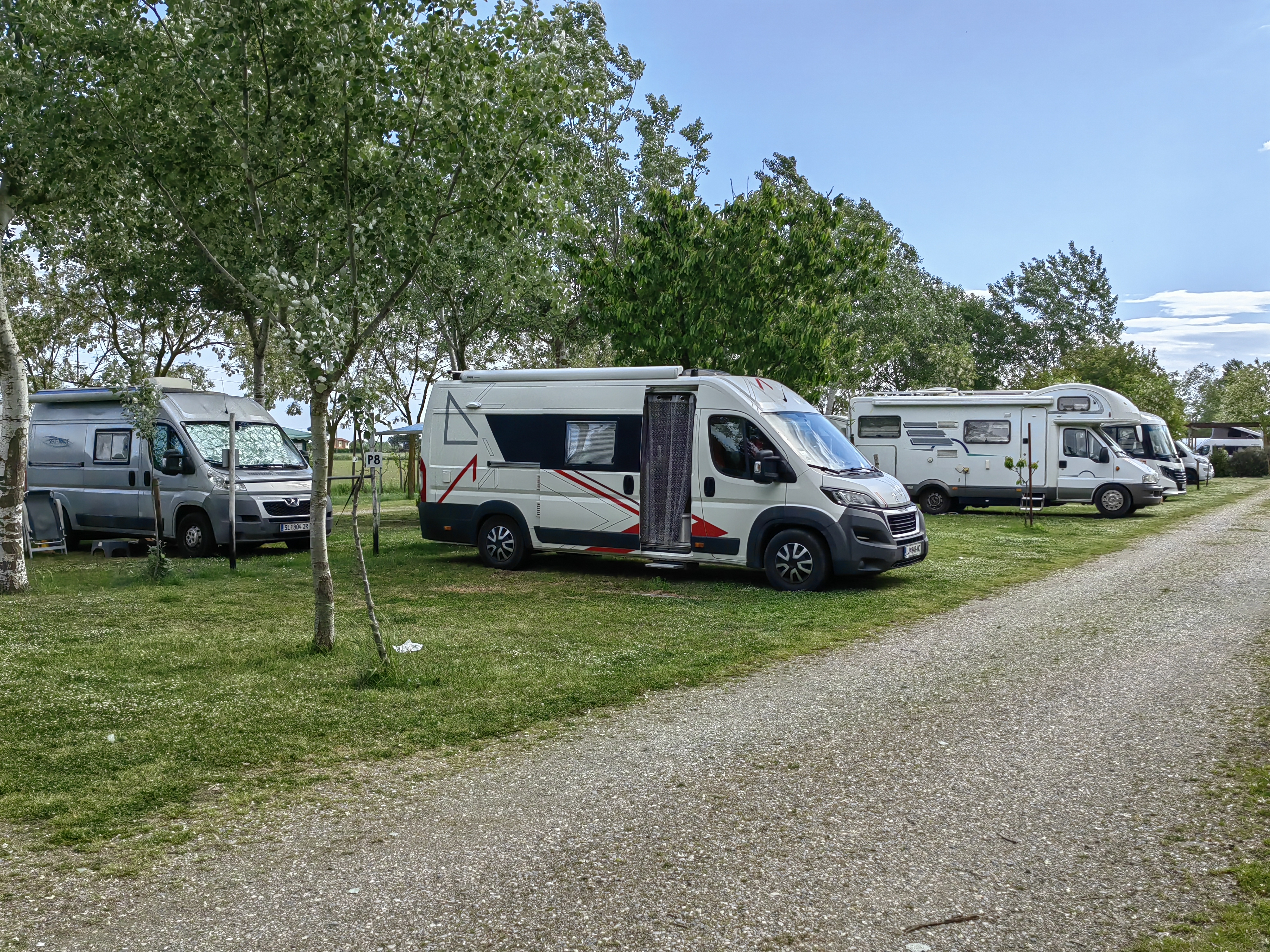 Od Orvieta do Rima vodi avtocesta A1, ki nas v približno uri in pol pripelje na vzhodno stran mesta, kjer smo rezervirali parcelo v kampu L.G.P. Roma (VIA CASILINA, 700 ROMA, 41°52.532’N – 12°33.314’E), ki se nahaja kakih 5 km od starega dela Rima, do katerega lahko pridete s tramvajem ali busom, s postajami v neposredni bližini kampa. Prostor je velik in ponuja okoli 200 parcel srednje velikosti, je pa bilo potrebno v času prvomajskih praznikov parcelo vnaprej rezervirati, sicer bi zopet pristali na neki rezervni opciji. Tukaj so na primer ponujali parkirišče na bližnjem travniku. Kamp nudi osnovno oskrbo z elektriko, vodo, izpustom sive vode in izpust kemičnega wc-ja. Morda je bilo za polno kapaciteto kampa le premajhno število wc-jev. Tuši so na voljo za doplačilo 1,5 eur, v sklopu sanitarnega objekta prav tako nudijo kapacitete za pranje posode in pralni stroj. Parcele so ravne in travnate, in čeprav je zraven ena od vpadnic v mesto ter proga za tramvaj je bilo ponoči tudi relativno mirno….razen siren rešilcev! Ampak za mestni kamp več kot solidno, za zelo zmernih 25 eur/noč, z možnostjo doplačila za pozni odhod 10 eur. Dodatno se plačuje nesramno draga turistična taksa, ki za osebe nad 10 let znaša 3 eur/dan. Mi smo tam na polno uživali tisti čas, ki smo ga sploh preživeli pred avtodomom, seveda pa smo veliko večino časa raziskovali Rim.