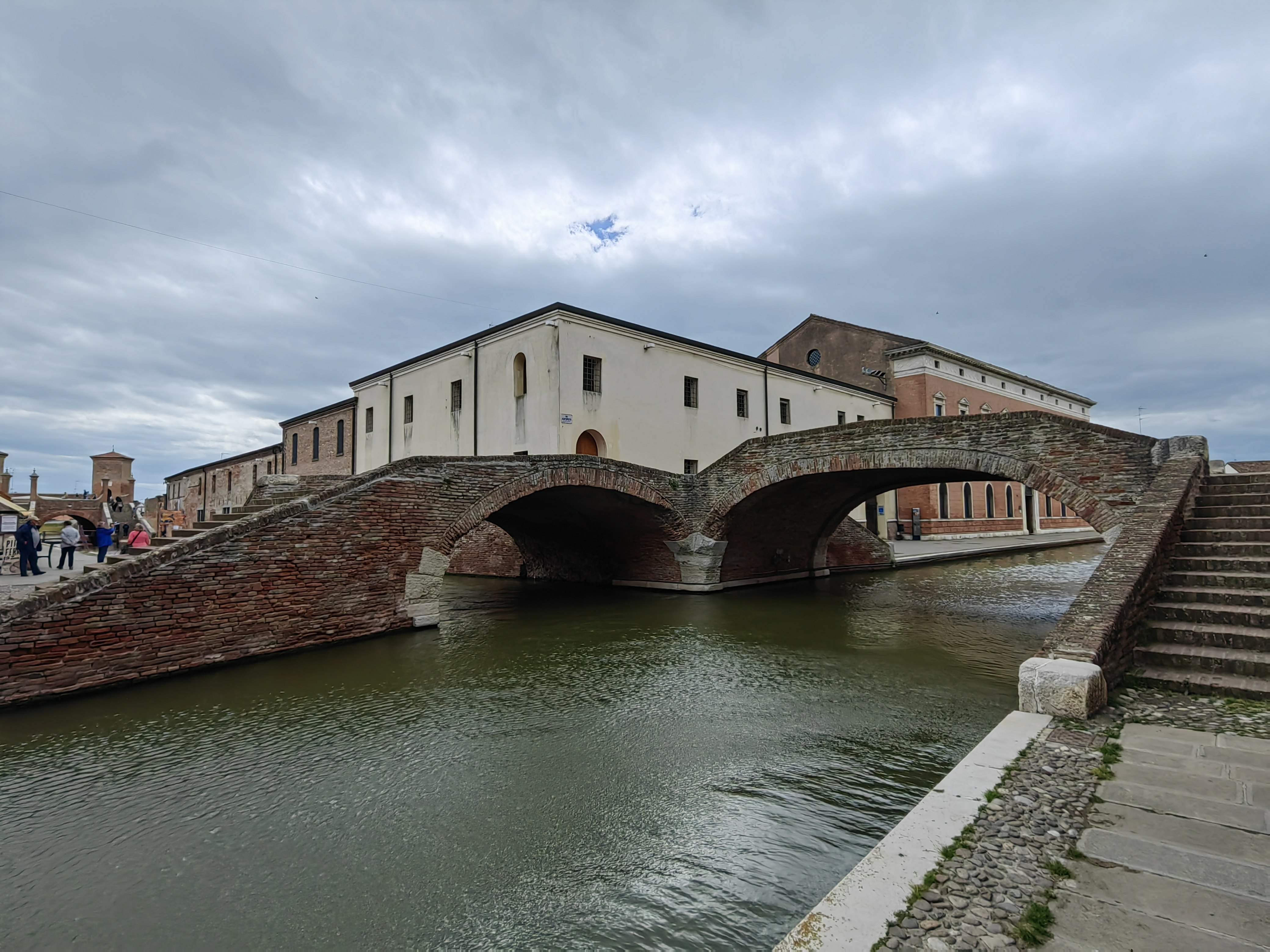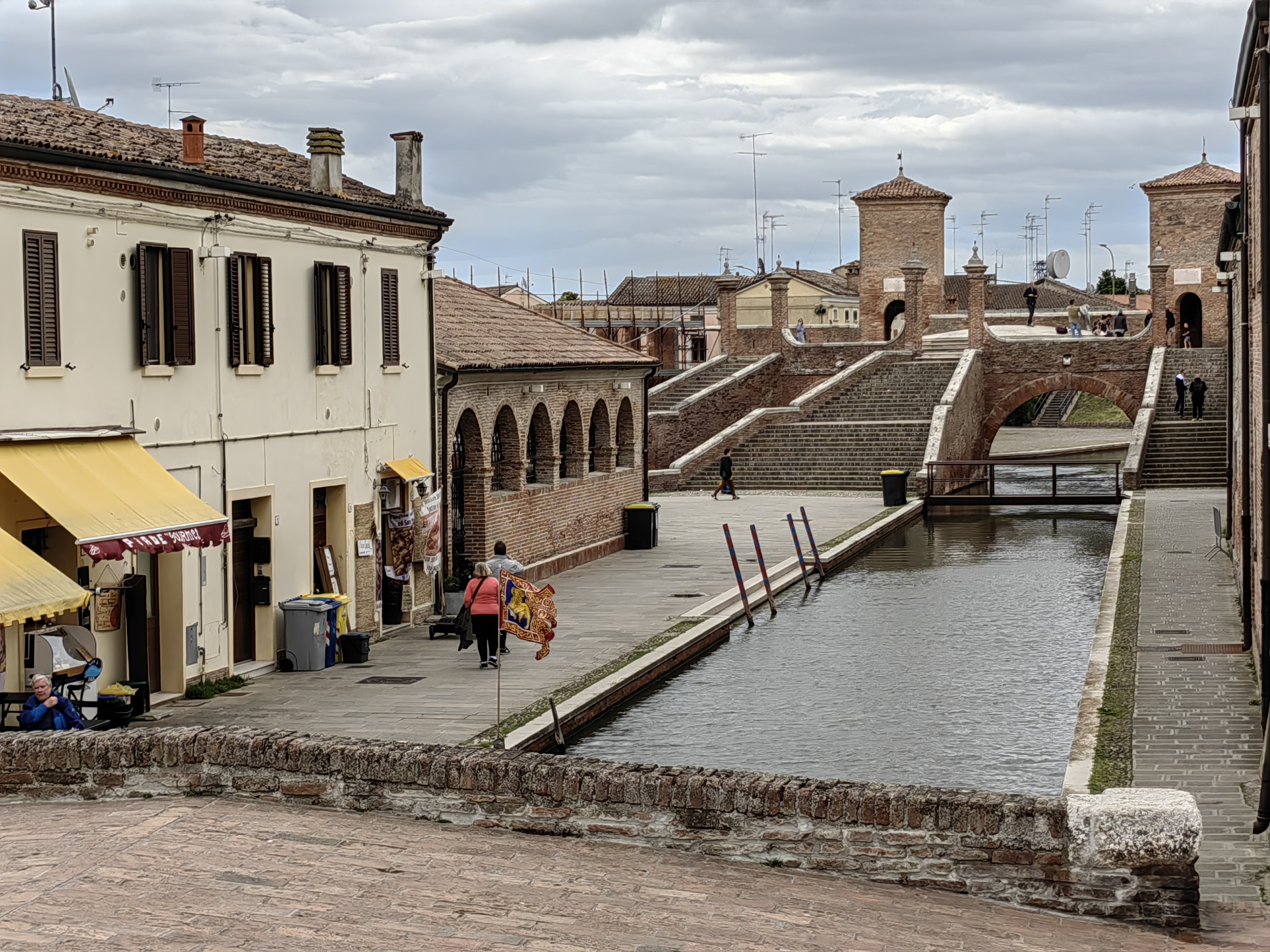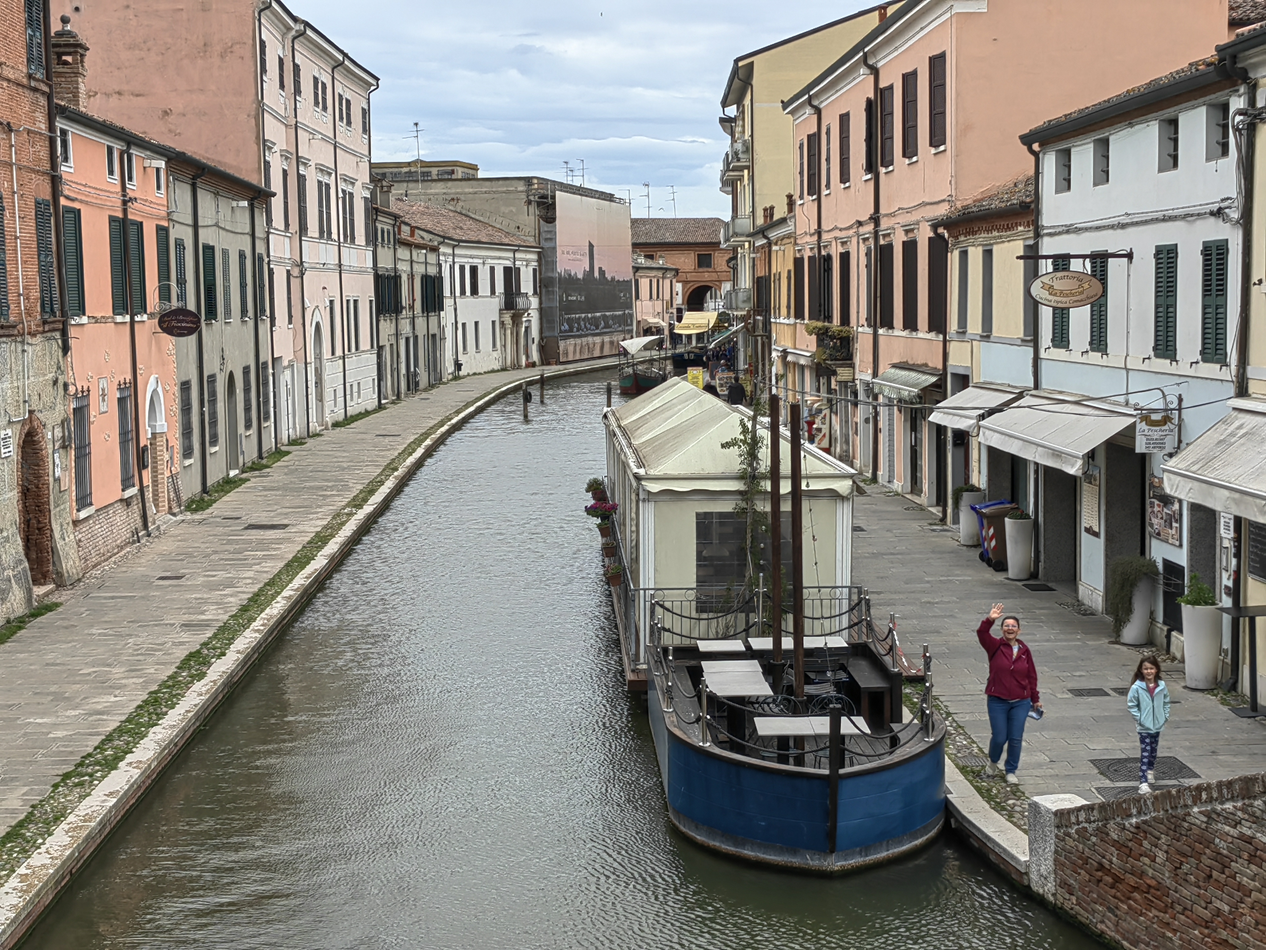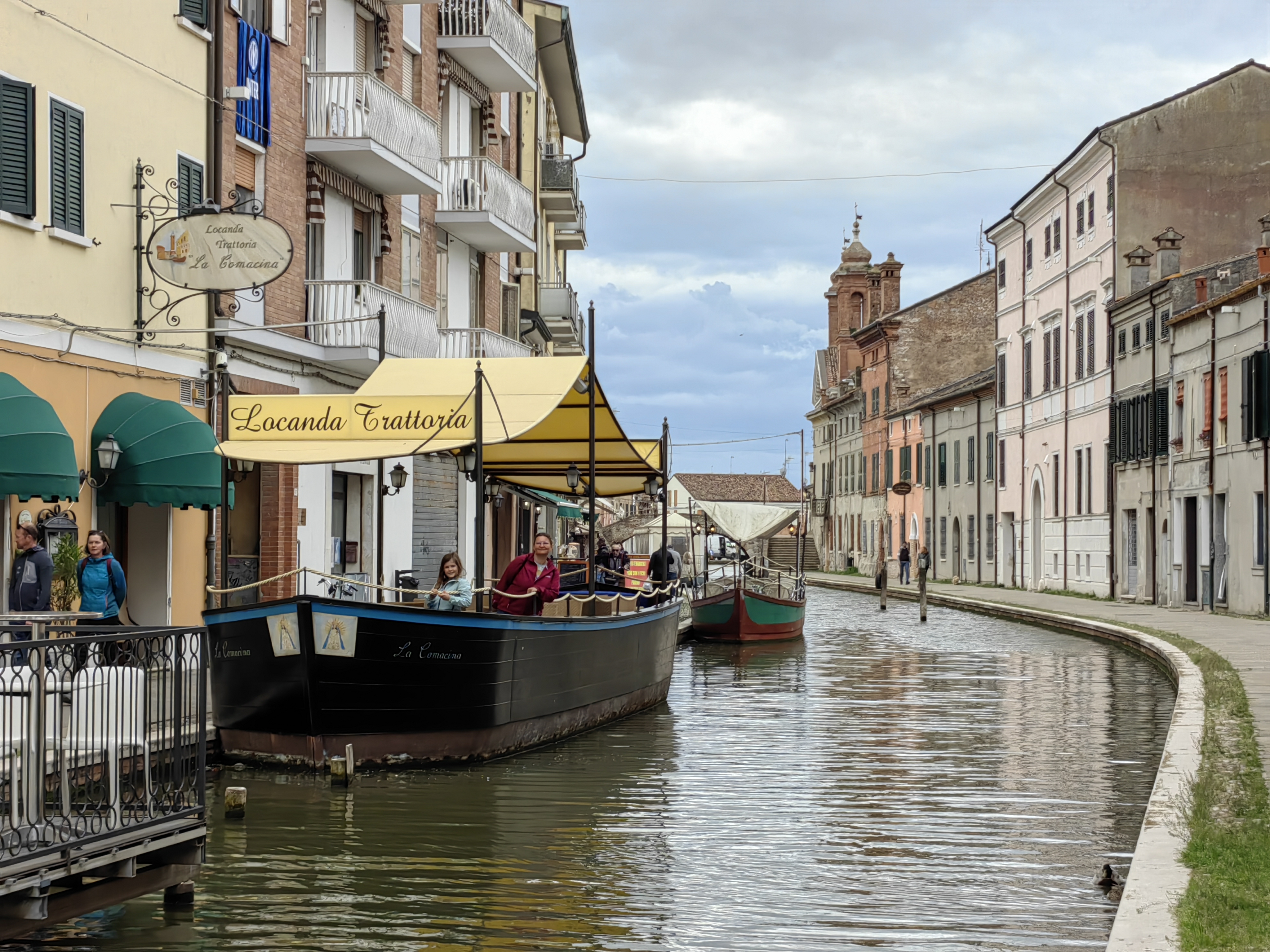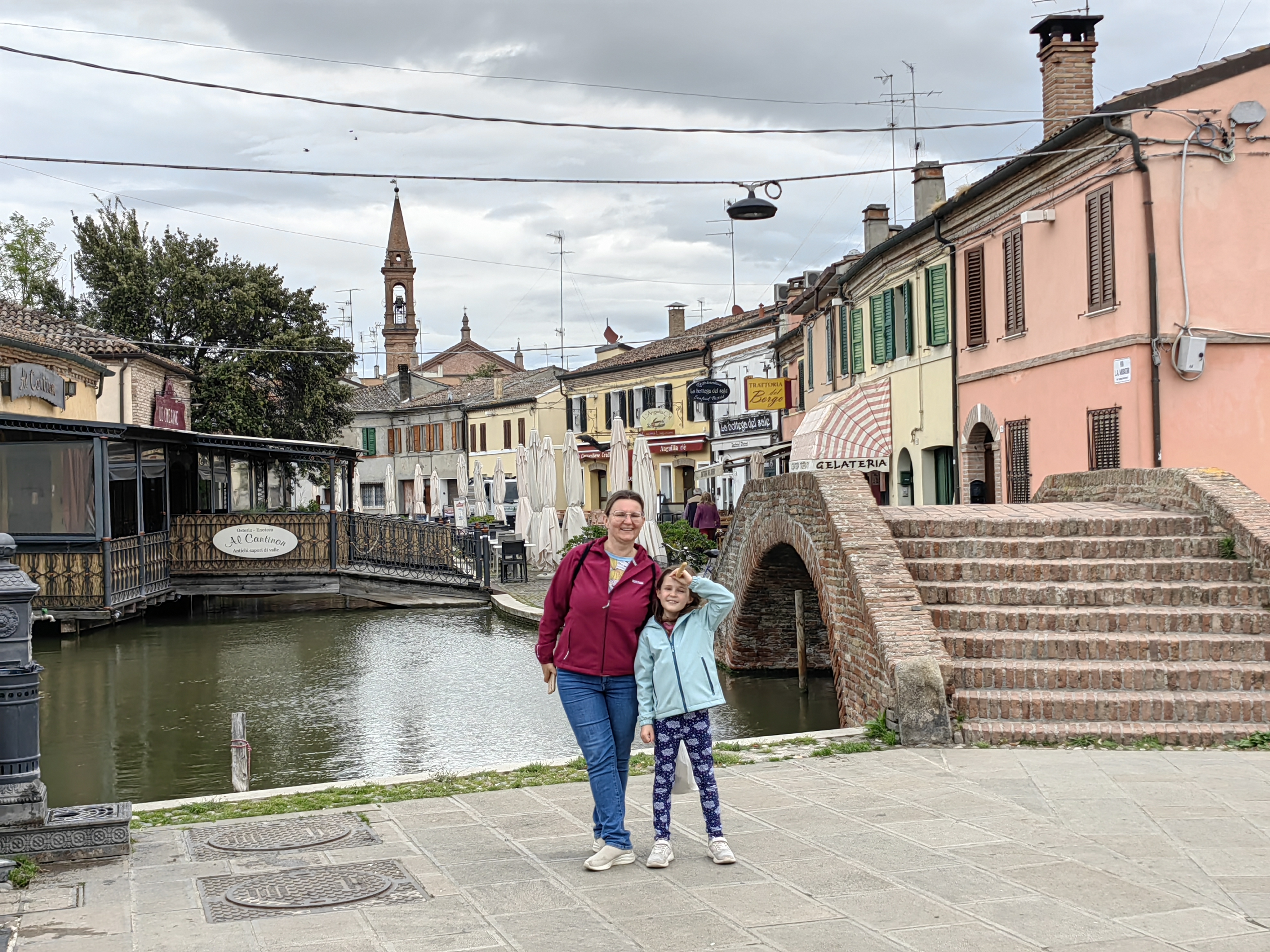 Po jutranjem sončnem pozdravu, se je hitro pooblačilo in tudi zaradi ne ravno obetavne vremenske slike, smo se odločili za odhod proti domu s spontanimi postanki. Eden takšnih je bil Commachio, simpatična ribiška vasica na severnem robu naravnega rezervata Valli di Commachio. Parkirišče se brez težav najde za Supermercatom COOP, kjer je veliko parkirišče za avtomobile, ob njegovem robu pa tudi Parcheggio Camper. Sprehodili smo se po uličicah vasice, ki v nekem območju malo spominja na Benetke, vendar brez hord turistov. Prav simpatično se je bilo sprehajati ob kanalih, kjer je tudi nekaj prijetnih lokalov in trgovinic z lokalnimi dobrotami. V eni od njih smo se opremili za našo malico na poti in krenili naprej proti domu. Zaradi slabega vremena smo uspeli narediti le še en postanek, praktično nam ni preostalo nič drugega, kot da se ustavimo v znanem shopping centru v Noventi di Piave 🙂