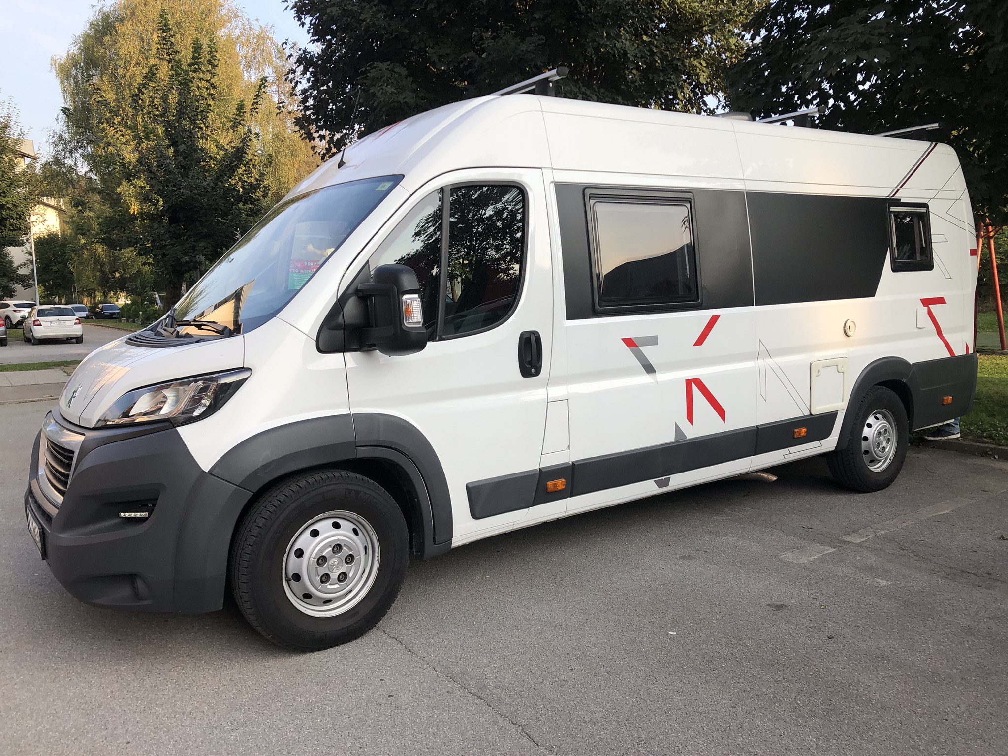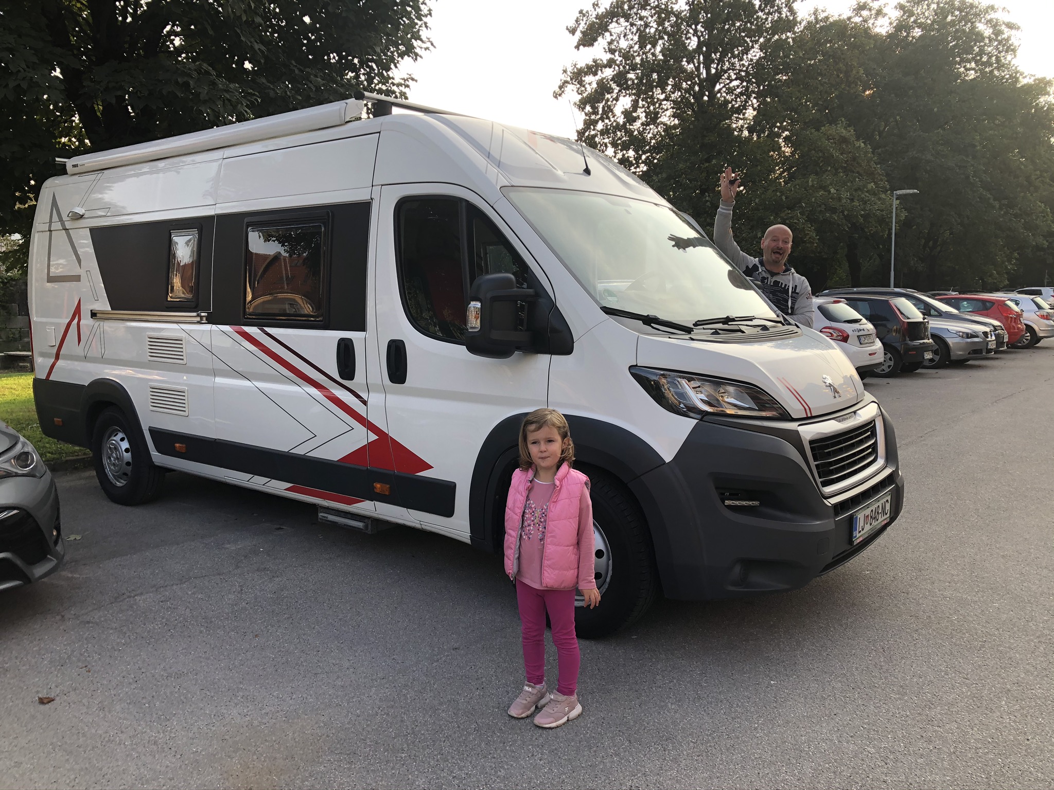 Kmalu po vrnitvi iz Italije pa sem zasledil oglas, ki je resnično vzbudil mojo (in kasneje tudi Sašino) pozornost. Izgled vana je bil simpatičen, novejši letnik, malo prevoženih, najdaljša izvedba kombija, ki prinaša v zadku vzdolžno posteljo. Ima tudi močnejši motor, zračno vzmetenje, aduti se kar ne končajo….in še povrhu tega je lastnik iz okolice Domžal. Pa smo se kar hitro zmenili, da gremo na kratek družinski kolesarski izlet (mi kolesarji) in si v živo pogledamo tole mikavno ponudbo. Verjetnost, da bi šli v nakup sem sam ocenjeval z 10% na poti tja. Bolj smo šli iz radovednosti, da primerjamo kako je sploh urejen bivanjski del in ali bi se v takšnem vanu mi znašli po tem, ko smo počitnikovali v precej večjih avtodomih. Ob našem prihodu smo se kar malo ločili saj sva z lastnikom gledala bolj tehnične stvari, pokazal mi je tudi vso dokumentacijo, njegova in moja partnerka pa sta imeli bolj praktične pogovore. Kar v redu kombinacija! No tudi po ogledu nisva bila toliko prepričana, da bi v tistem trenutku upal reči, da se bomo čez dva tedna že peljali v njem kot novi lastniki. Pa smo še malo gledali ponudbo ostalih vendar se mi je vseeno vedno bolj dozdevalo, da je cena res poštena in da bomo takšno ponudbo, ki nam je zelo ustrezala težko našli. Pa smo se zmenili, da ga zapeljemo na podrobnejši check k mojim starim znancem v Hiši na kolesih, kjer si je njihov vodja servisa vozilo podrobno ogledal in ga stestiral. Šele po njegovih res objektivnih informacijah in predlogih, ki jih je podal smo se pričeli nagibati k nakupu. Z lastnikom sva rekla še eno o ceni, doma pa sem moji predstavil vse pomembne stvari z ogleda in padla je odločitev, da gremo v nakup! Kar tako, čisto impulzivno. O ostalih formalnostih ne bom pisal, lahko samo napišem, da smo 1.10.2020 postali ponosni lastniki tega lepotca spodaj.