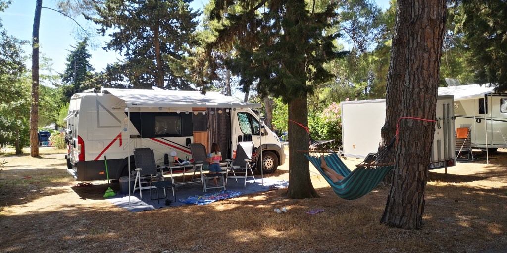 Bojda je kamp eden izmed najbolj nagrajenih na Hrvaškem. Ponuja preko 1000 parcel, kar pomeni, da morate v primeru najbolj oddaljene parcele od morja opraviti kar konkreten sprehod. Omenjam predvsem tistim, ki s sabo na plažo radi tovorijo polovico avtodoma, naporno pa zna biti tudi za nošnjo supa npr. Mi smo imeli parcelo bližje morja in je ponujala kar nekaj sence. Tudi sicer je kamp v večini lepo pokrit s prijetno borovo senco, tako da ni težko najti parcelo, ki vas bo poleti obvarovala pred žgočim soncem. Parcele so večinoma ravne, kak manjši popravek je morda potreben, da vozilo stoji v ti. vaservago.